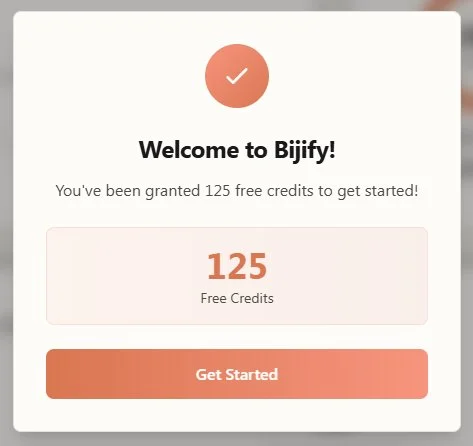 Once your account is created, you can enter your Dashboard to start creating. You have 125 free credits to try the tool (you can generate up to 5 Bijifys!).
