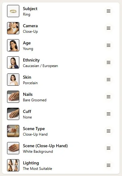 Tip: You can choose a template that isn't for your specific jewelry type and change it later in the options. For example, choose a still-life with earrings and then switch the setting to "ring".