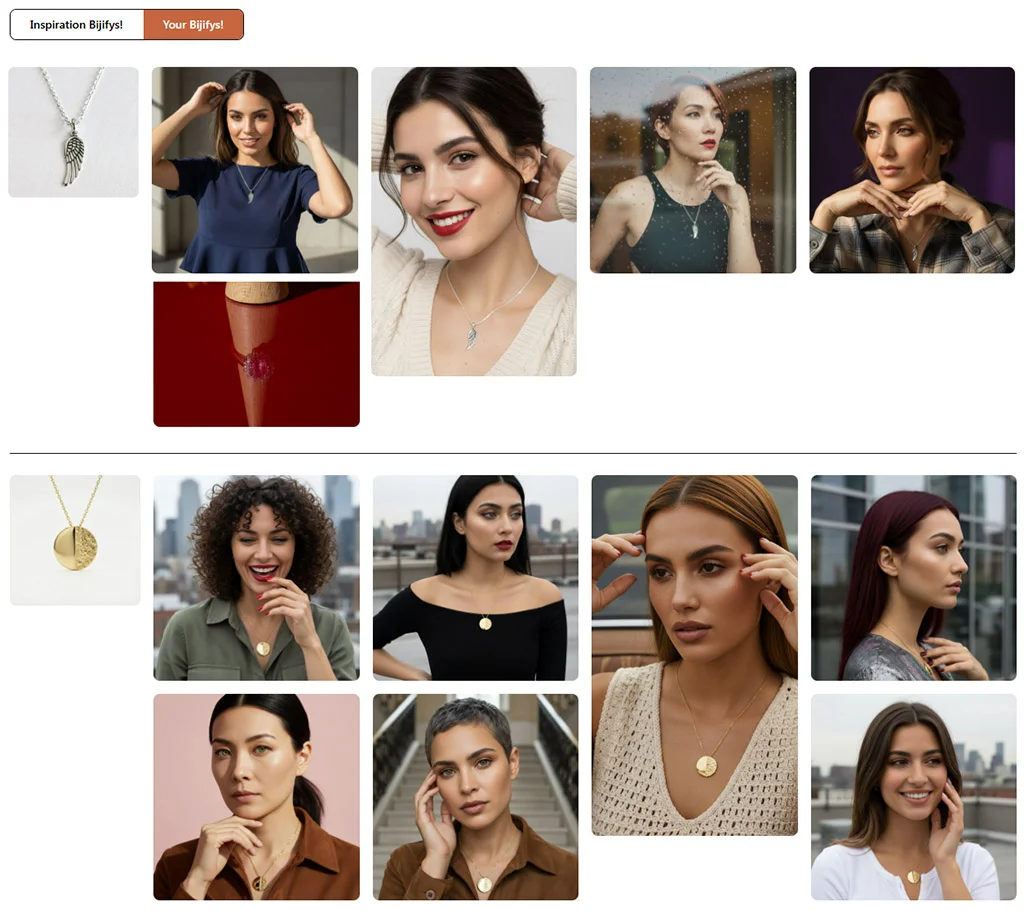 Ideally, it should be as high-quality as possible: good resolution, good lighting, and sharp focus on the jewelry. However, don't worry! We have done many tests, and you can actually try with almost any photo you have. Even if the resolution isn't great or the lighting isn't perfect, simply upload your photo and let Bijify! work its magic.